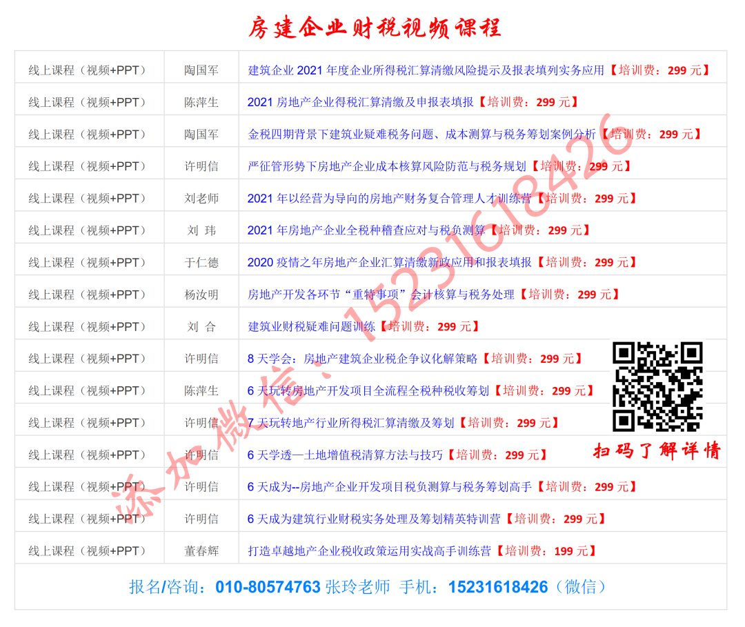 【线上视频课程】 房地产开发各环节“重特事项”会计核算与税务处理