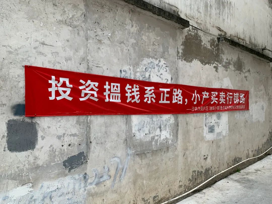 ▲在小产权房交易非常活跃的沙井,官方拉横幅告诫风险